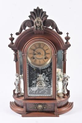 EIGHT DAY CLOCK: An early 20th century walnut eight day Triumph mantel clock by the Ansonia Clock Company