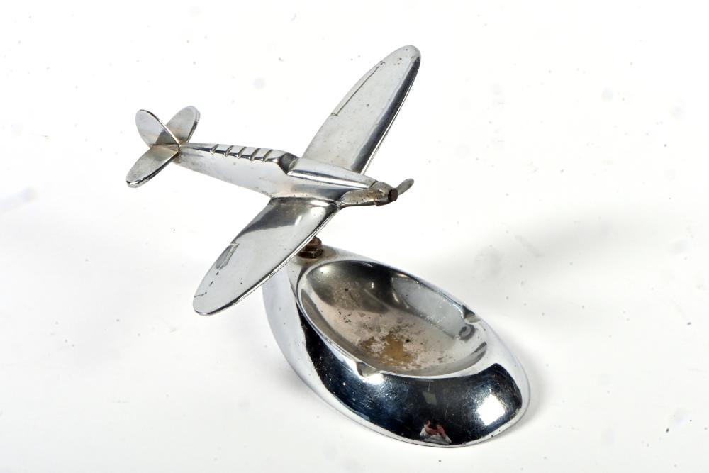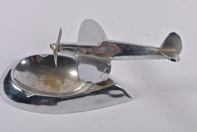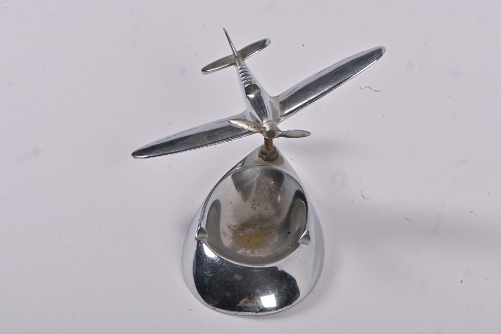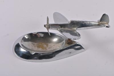 DESK PIECE: An Art Deco chromed figure of an aeroplane on ashtray base, 8cm high