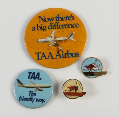 TAA: Four TAA badges including one enamelled membership or club badge, numbered 876 to back