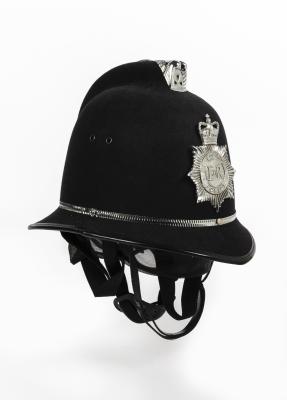 BOBBY: An original English Metropolitan Police bobby helmet by Custodian Helmet in a large size, 25cm high