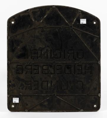 HEIDELBERG CYLINDER: A late 1950s Heidelberg Cylinder Letterpress printing press cast aluminium door, 36.5 x 32cm