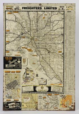 MELBOURNE: A nice circa 1956 Broadbents map no.182 of Melbourne printed on tin for the Olympic Games, 76 x 51cm