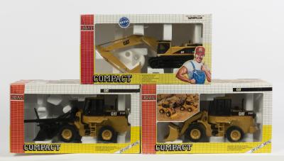 CATERPILLAR: Three scale Joal diecast models, a 1:50 scale CAT 375 hydraulic excavator, a 1:25 scale CAT 918F loader and a 1:25 scale IT18F loader, NIB
