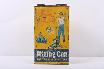 GOLDEN FLEECE: A Golden Fleece H.C. Sleigh two stroke mixture mixing can, complete with pourer and measuring tube