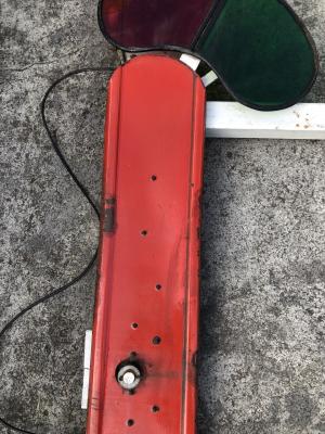 RAILWAY: Vintage railway enamel semaphore signal arm with plastic lense.173cm x 90cm.