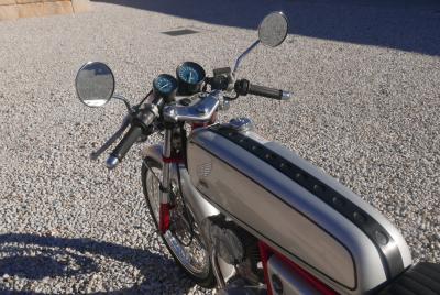 Harking back to Honda’s race bikes of the 1960s, the Dream 50’s frame and lower forks were finished in red while the slimline tank, mudguards, tail section and side covers were all finished in silver metallic. The twin port engine sports two chrome header pipes, all of which combines to make the Dream 50 a great looking bike, one that looks just as good standing still. Equipped for road use, the original Dream 50 sports indicators, instrumentation and even a small luggage rack.