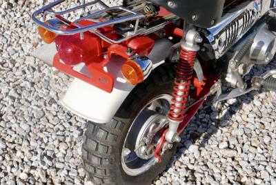 Celebrating the 30th anniversary of the Z50, Honda released a limited edition version for the Japanese market only with special badging, Ceramic White paint, a Monza Red frame and tartan saddle. Additional details include the locking helmet holder, a side stand and the chrome luggage rack.