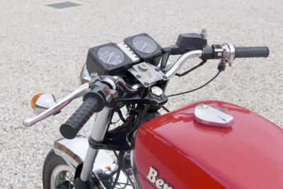 In this era where powerful Japanese engines generally outperformed the chassis, the Benelli Sei endeavoured to combine Japanese-like horsepower with European handling. Top quality chassis components included Brembo brakes, Marzocchi suspension, and Borrani light alloy wheels. And despite the wide engine, the 219kg Benelli Sei was a fine handling machine in the best Italian tradition.
