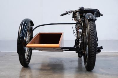 As a significant contributor to Australian motorcycle competition history, in recent years this bike has been on long term display at the National Motor Museum in Birdwood SA. It is sold with the museum display board outlining the history, a matching black early Cromwell pudding basin helmet, and includes an original A.J Stevens & Co. decal on the sidecar.