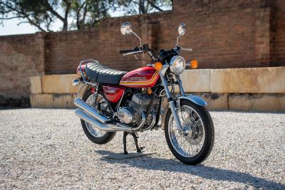 The final evolution of the series, the KH250’s lubrication system was revised and a front disc brake was added on the B1 version in 1976, although a drum brake could still be specified. A wonderfully agile machine, Kawasaki’s little two-stroke survived until 1981 and as interest in the triples of the 1970s has increased over the years, values have risen accordingly.