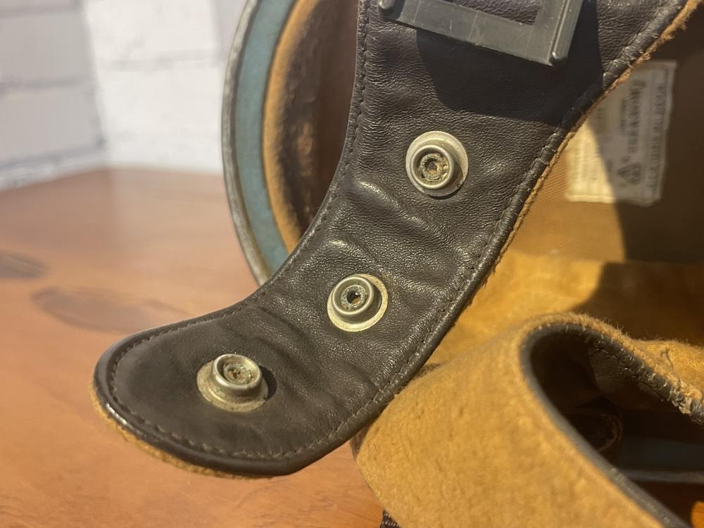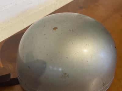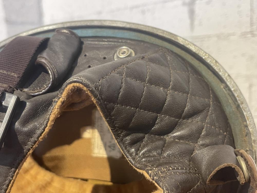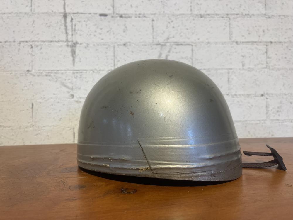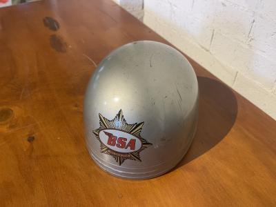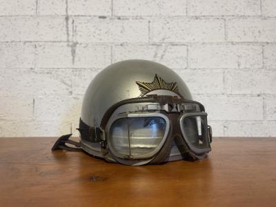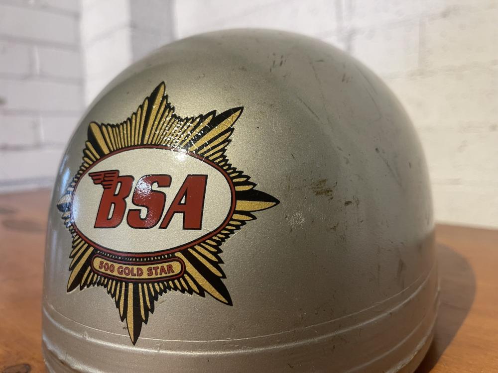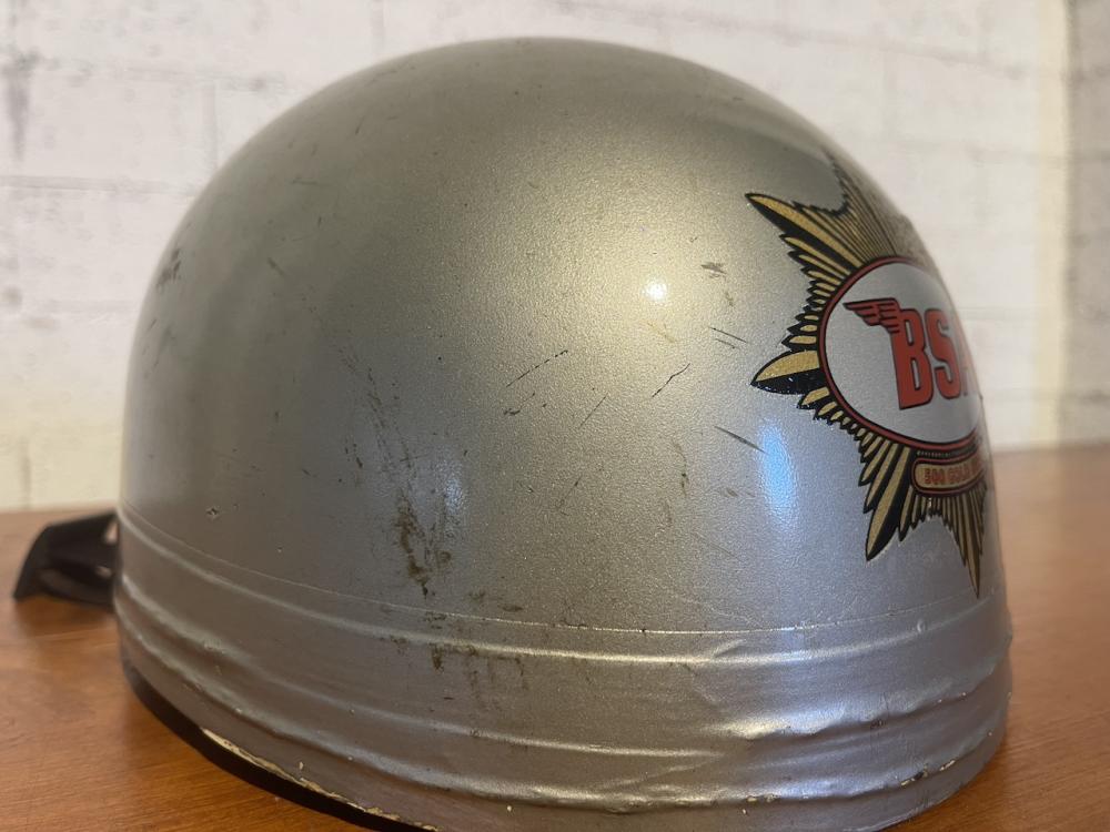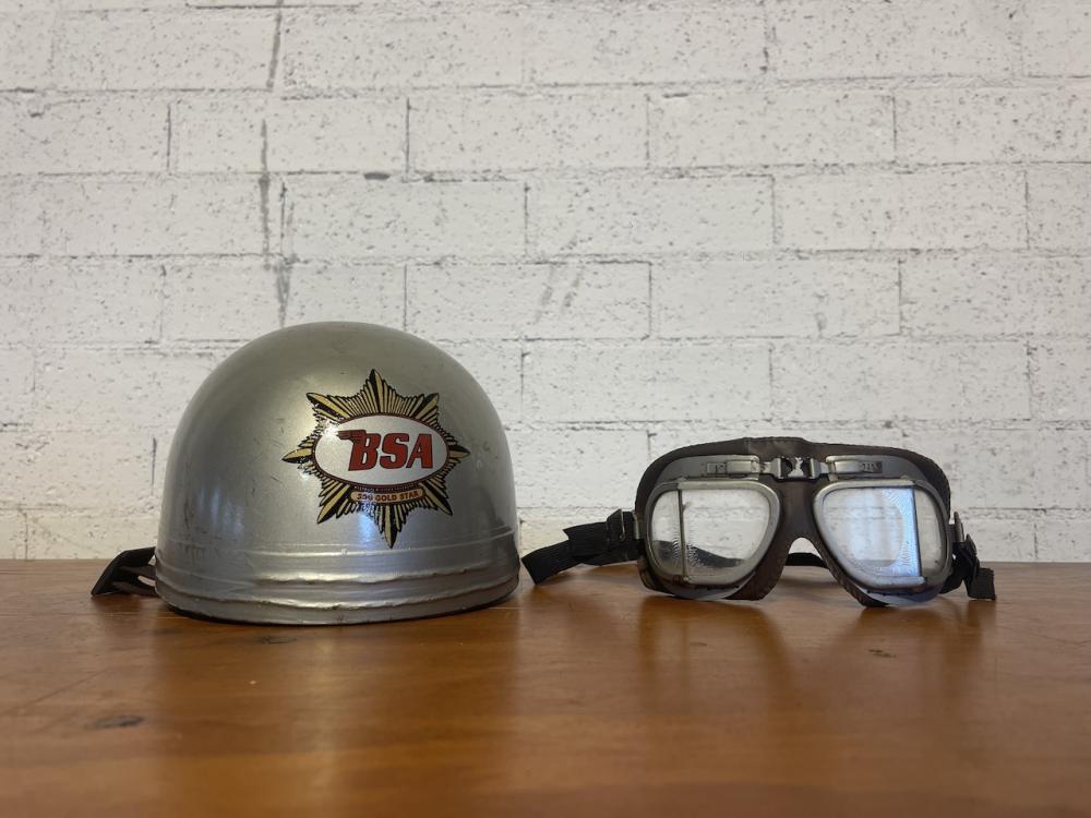 CROMWELL: A Type 2001/56 lined helmet (size 7), painted silver with BSA decals and a pair of period goggles, both in used condition