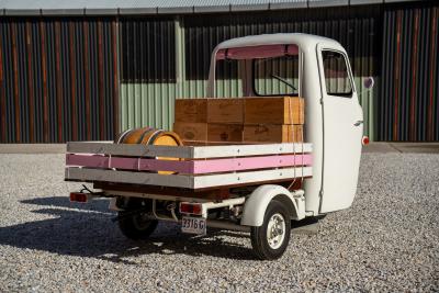 Restored by the current Sydney owner for his daughter’s wine business, the Lambretta’s engine was rebuilt with a 200cc cylinder, all-new engine seals and the gearbox was overhauled with working reverse gear. Other features include an in-line fuel pump to enable the Lambretta to perform on hills, an electric starter (dynastart) fitted (a period option alongside the usual kickstart), the correct exhaust system and the brakes overhauled.