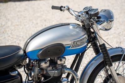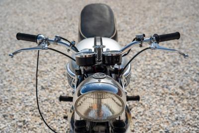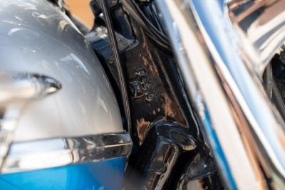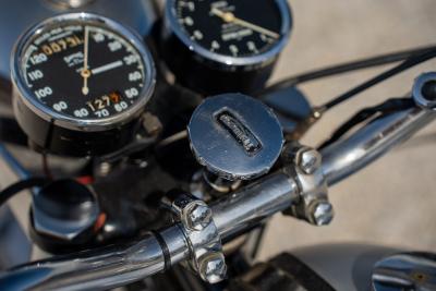 Finding an early Bonneville like this is becoming increasingly difficult and the older restoration has held up well, with general wear and tear commensurate with years of careful use. There is a little light pitting evident on some of the chrome work, flaking of the brightwork on the upper forks and a few tiny stone chips on the guards and tank but the Triumph has developed a lovely patina over time and presents as a very honest, well-restored and much loved bike.