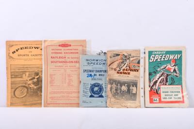 BRITISH SPEEDWAY: A collection of five British Speedway ephemera items including Speedway News Vol 1 No 6 1933, Norwich 1959 & Cardiff 1952, & Speedway News 1930 No.8. |
