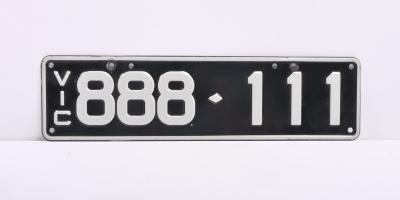 Six-digit Victorian Custom Numerical plates '888-111', sold with rights to display.
