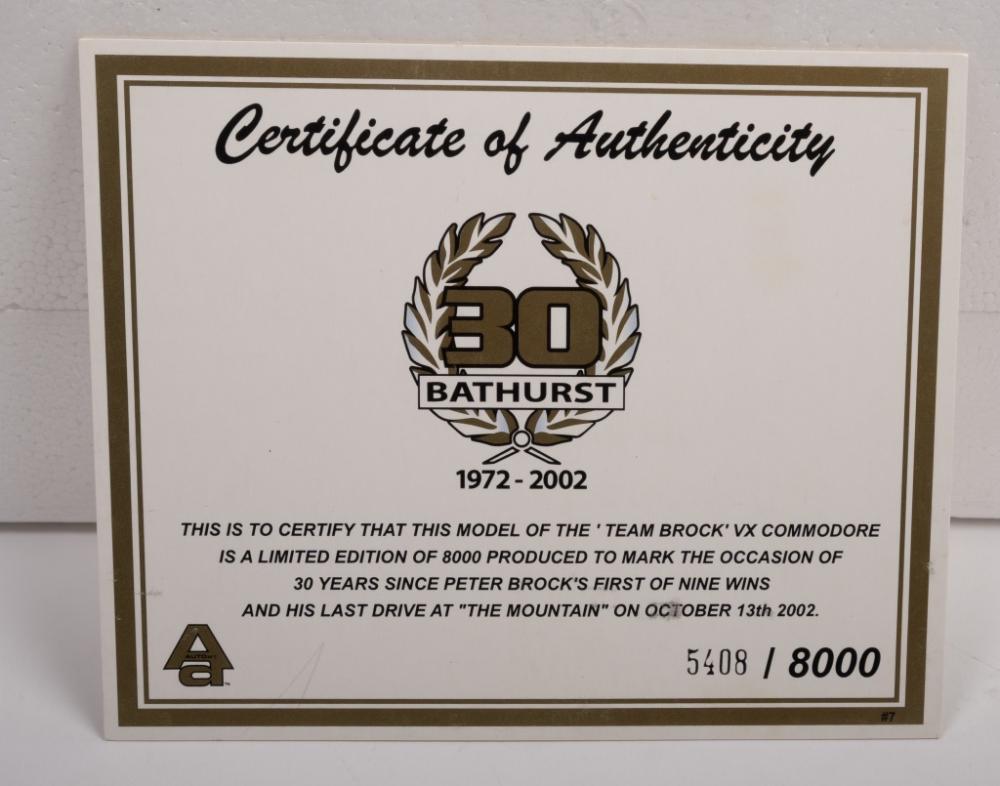 HOLDEN VX COMMODORE: A 1:18 scale Holden VX Commodore model, Team Brock 2002, made by AutoArt for Biante model cars, in original box but box has some yellowing