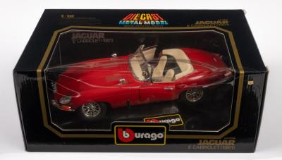 JAGUAR E TYPE: A 1:18 scale 1961 Jaguar E type cabriolet model, finished in red paintwork, made in Italy by Bburago, in original box
