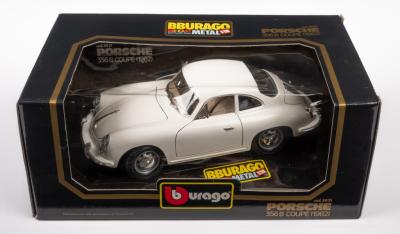 PORSCHE 356 B: A 1:18 scale 1962 Porsche 356 B coupé model, finished in white paintwork, made in Italy by Bburago, in original box, some damage to clear plastic