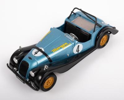 MORGAN PLUS 8: A 1:16 scale Morgan Plus 8 model, finished in blue paintwork with black mudguards and racing numbers