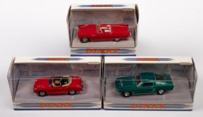 1950s-60s: Three 1:43 scale Matchbox Dinky 1960s-50s vehicles including a 1955 Ford Thunderbird, 1967 Ford Mustang Fast Back, and a 1968 VW Karmann-Ghia Convertible