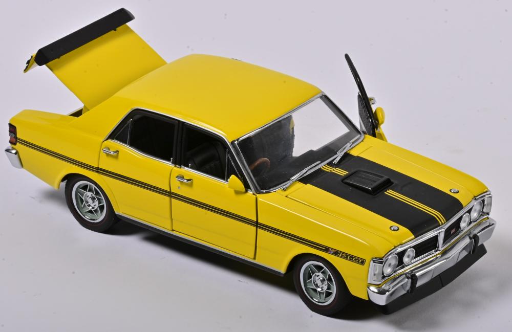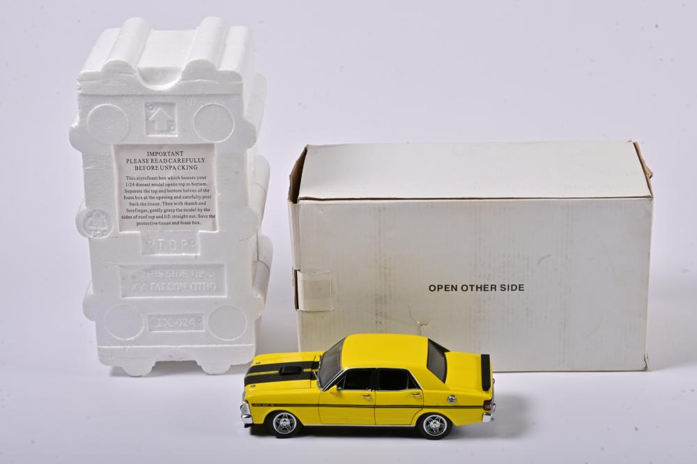 FALCON GTHO: A 1:24 scale XY Falcon GTHO Phase III model, finished in yellow paintwork with black stripes