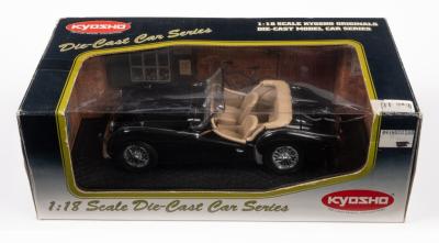 TRIUMPH TR3A: A 1:18 scale Triumph TR3A model, finished in black paintwork with a cream interior, made by Kyosho models, in original packaging