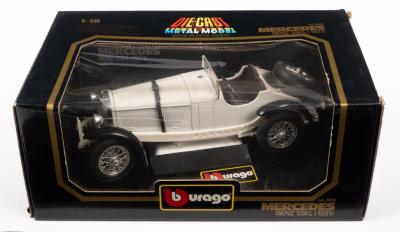 MERCEDES SSKL: A 1:18 scale 1931 Mercedes Benz SSKL model, finished in white paintwork, made by Bburago, in all original packaging