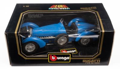 BUGATTI TYPE 59: A 1:18 scale 1934 Bugatti Type 59 model, finished in blue, made by Bburago, in all original packaging