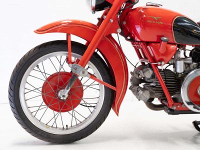 The Falcone’s success was undoubtedly due to the purposeful styling and its relationship with the catalogue racers, the Condor and Dondolino. Smaller mudguards, a rounded 17.5 litre fuel tank, and friction instead of hydraulic dampers gave it a much more sporting profile. Special touches included 19-inch alloy wheel rims.