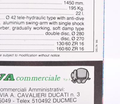 DUCATI: A colour fold out 1986 Ducati 750 Paso Desmo sales brochure