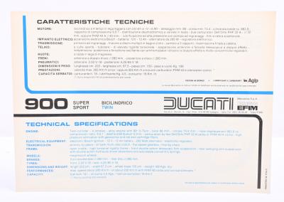 DUCATI: A double sided single sheet 1979 Ducati 900 Desmo SS sales brochure, printed in italy.