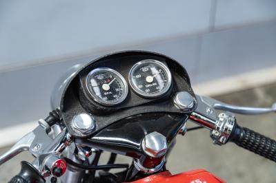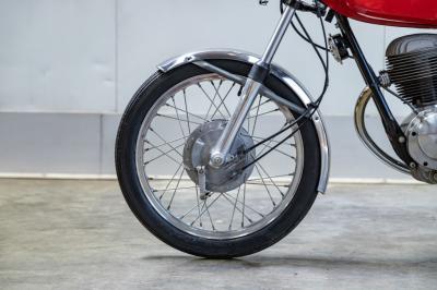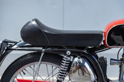 A five-speed 125 replaced the Centomila-based four-speed 125 GTL for 1966. Still with sporting bodywork and a low handlebar, this had new side covers and silver, black and red colours. The engine specifications were unchanged, and production continued until 1969. More updates occurred for 1970 when the 125 GTL evolved into the 125 GTL-S. The five-speed engines received more angular plain outer covers and a tachometer drive on the left. With a 10:1 compression ratio and a larger Dell’Orto MB22B carburettor, the 125 GTL-S engine produced 13 horsepower at 8,500 rpm.