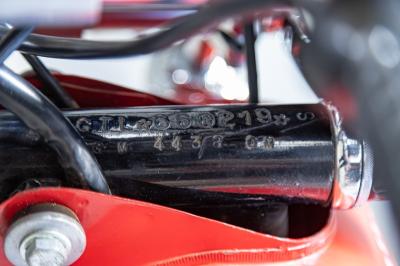 MV’s first production four-stroke was the 125 Turismo Rapido of 1954, and by 1958 this had evolved into several incarnations and was MV’s best-selling model. For 1959 the 125cc four-stroke single was substantially revised, primarily to improve reliability. MV called it the “Centomila”, or 100,000, indicating the number of guaranteed kilometres. This was an exceptional figure for the day. While the overhead valve single cylinder engine looked outwardly similar to the previous version it was completely new. The bore and stroke of 53x56mm provided 123.6cc, and stronger bearings and shafts, and a new lubrication system ensured the improved reliability. This continued unchanged for a few years but a new version, the 125 GTL (Gran Turismo Lusso), was available for 1964. Now with a restyled fuel tank, seat, and mudguards, the power was 9 horsepower at 6,600 rpm.