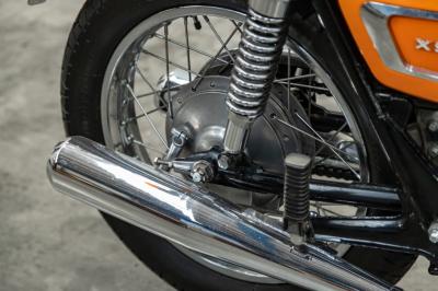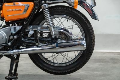 The early XS1 was afflicted with a marginal double cradle mild steel frame, a flimsy front fork, limp shock absorbers, and a particularly weak 200 mm front drum brake. Fortunately Yamaha soon became aware of the XS1’s shortcomings and most of these problems were soon rectified. The forks were improved for 1971 (along with 34 mm carburettors), and the XS2 of 1972 gained a front disc brake, an electric start, and a slightly lower 8.7:1 compression ratio in an effort to quell vibration. The weight also increased from 185 to 194kg. These improvements resulted in the XS2 becoming the best seller in Yamaha’s street bike range in the US in 1972. With a production span lasting from 1970 through until 1983 the Yamaha 650 twin was one of the longer lasting motorcycle engine designs of the era. And as the Yamaha XS650 has earned an enviable reputation for reliability the XS series has won a cult following.