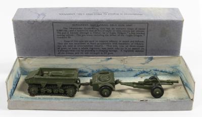 QUICK-FIRING FIELD UNIT: A rare Pre War Dinky Toys No. 162 18-Pounder Quick-Firing Field Unit, in original box made in England by Meccano Ltd
