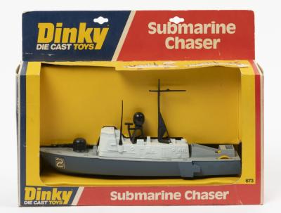 SUBMARINE CHASER: A Dinky Toys No. 673 Submarine Chaser, in original box made in England by Meccano Ltd |