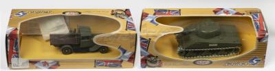 USSR: Two vintage Russian military models including a Anti-Tank Missile Launcher and a Multiple Rocket Launching System Truck, within original boxes |