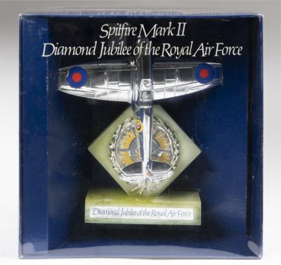 SPITFIRE MARK II: A rare Dinky No. 700 Spitfire Mark II Diamond Jubilee Of The Royal Air Force, in original plastic bubble packaging made in England by Meccano Ltd |