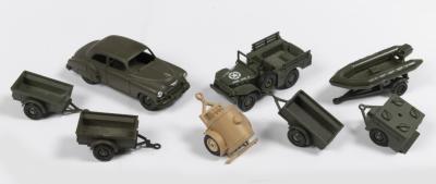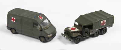 SOLIDO: Two Solido Military Models No. 61010 Dodge 4x4 Sanitaire + Remoque Accessoires and a Jeep Accessoires + Remorques, in original boxes |