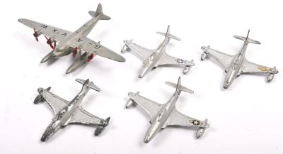 DINKY PLANES: A collection of Dinky planes including No.63B Seaplane, and four No.70F Shooting Star jets |
