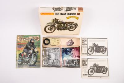 VINCENT: A c1980 Matchbox Vincent Series C Black Shadow 1:12 scale motorcycle model kit. Kit seems to be complete, with box. [Location Cheltenham, VIC]