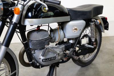 The Model 8 Metralla was Introduced in 1962. With a large tank, flat bars, and semi-rear set footpegs, the Metralla was styled to resemble a European endurance road racer. Weighing 95kg and powered by a four-speed 196cc two-stroke engine, it was a rocket. At a time when the fastest production machines available were 650cc British twins that could run a standing 400 metres in around 15 seconds the little Bultaco was barely a second behind. With the optional racing kit the Bultaco had a top speed around 150 km/h and would leave all the famed British twins for dead on a mountain road.