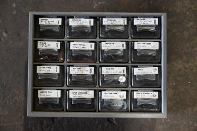 TOOLS: A 16 multi-grid drawer with screws, nuts and washers [Location: Sydney] |