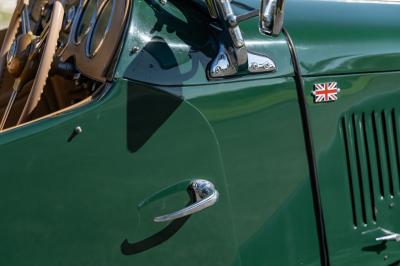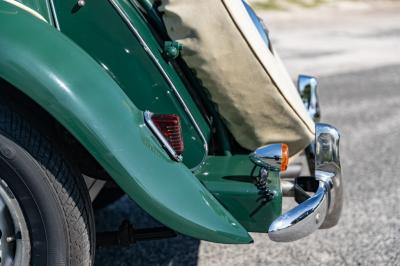 The MG sits on a set of correct (for the TD) steel wheels, with hubcaps, and comes with a Black soft top, Beige tonneau and matching spare wheel covers, and a pair of additional auxiliary lights up front.