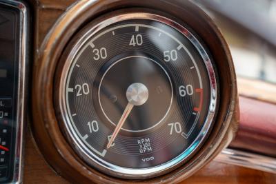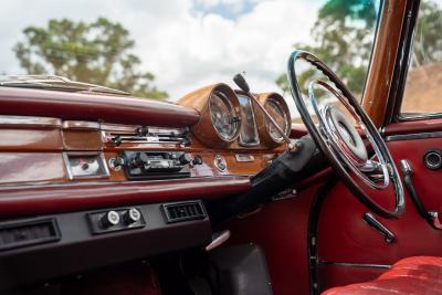 The pressed steel coachwork of the cabriolet was built at Sindelfingen alongside the saloons but finished by hand to a much higher standard than their four-door siblings. The 220SE coupes and cabriolets also benefited from more luxuriously appointed interiors, with unique door trims, carpeting throughout and the option of a polished walnut dash and full leather upholstery. A new padded-type steering wheel and more comprehensive instrument panel were also found in the W111 two-door range, along with a floor-mounted transmission lever and standard seating for five adults, although front and rear bucket seats could be specified.