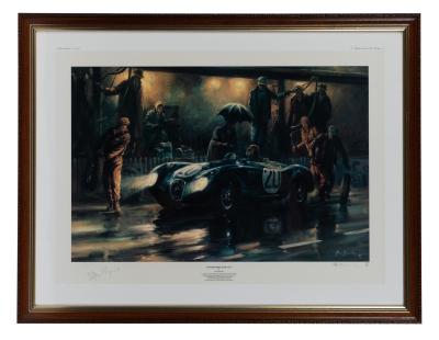A limited edition print [701/850] by Alan Fearnley, depicting the works C-Type at the 1951 Le Mans, signed by Lofty England and the artist [Location: Cheltenham, VIC]