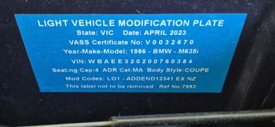 Previously on full Victorian registration, this 1986 BMW M635 CSi is being offered for sale here unregistered.