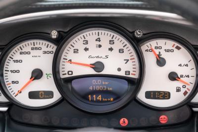 From 2005 onwards the improved Turbo S was available, essentially using the previously available X50 package (comprising larger K24 turbochargers and intercoolers, revised ECU and quad pipe exhausts) raising power output to 444bhp. Other upgrades included Porsche Ceramic Carbon Brakes, a 6-disc CD changer and special alloy-faced instruments. Performance was electrifying, with 0-100 km/h taking 3.9 seconds on the way to a top speed of 307 km/h, making it the fastest production road car in the world.