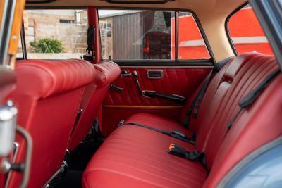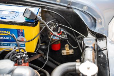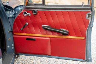 Meanwhile the body was sent for refurbishment, with any rust removed and repainted in Dove Grey, a beautiful light metallic blue factory colour, while the interior was re-trimmed in contrasting red upholstery.