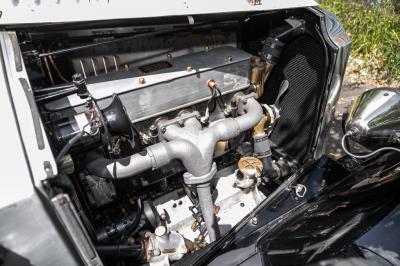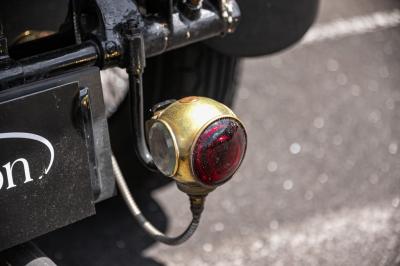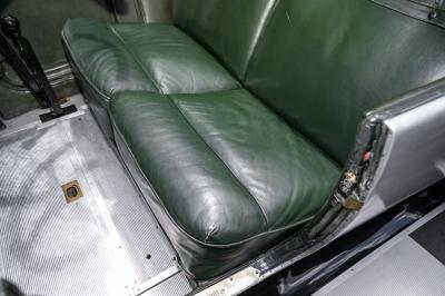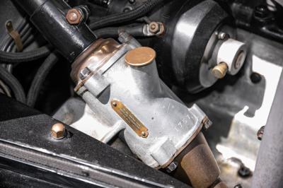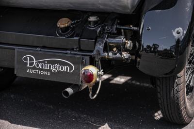 Restored to a high standard, the 23/60 OD’s brushed aluminium bodywork is offset by painted black guards and nickel plate C.A.V headlights and side lights, and brass taillights. It sits on a set of black-painted wire spoked wheels, with the spare mounted on the right front guard.